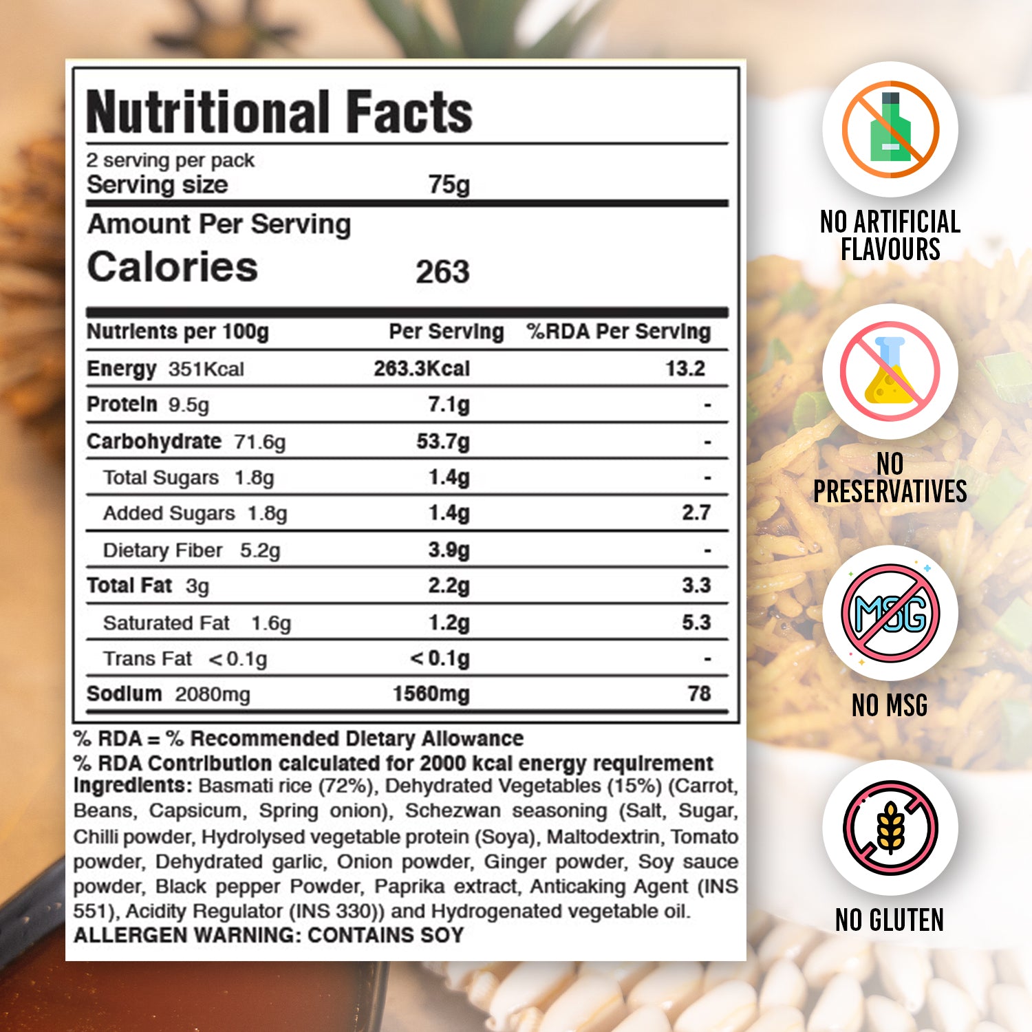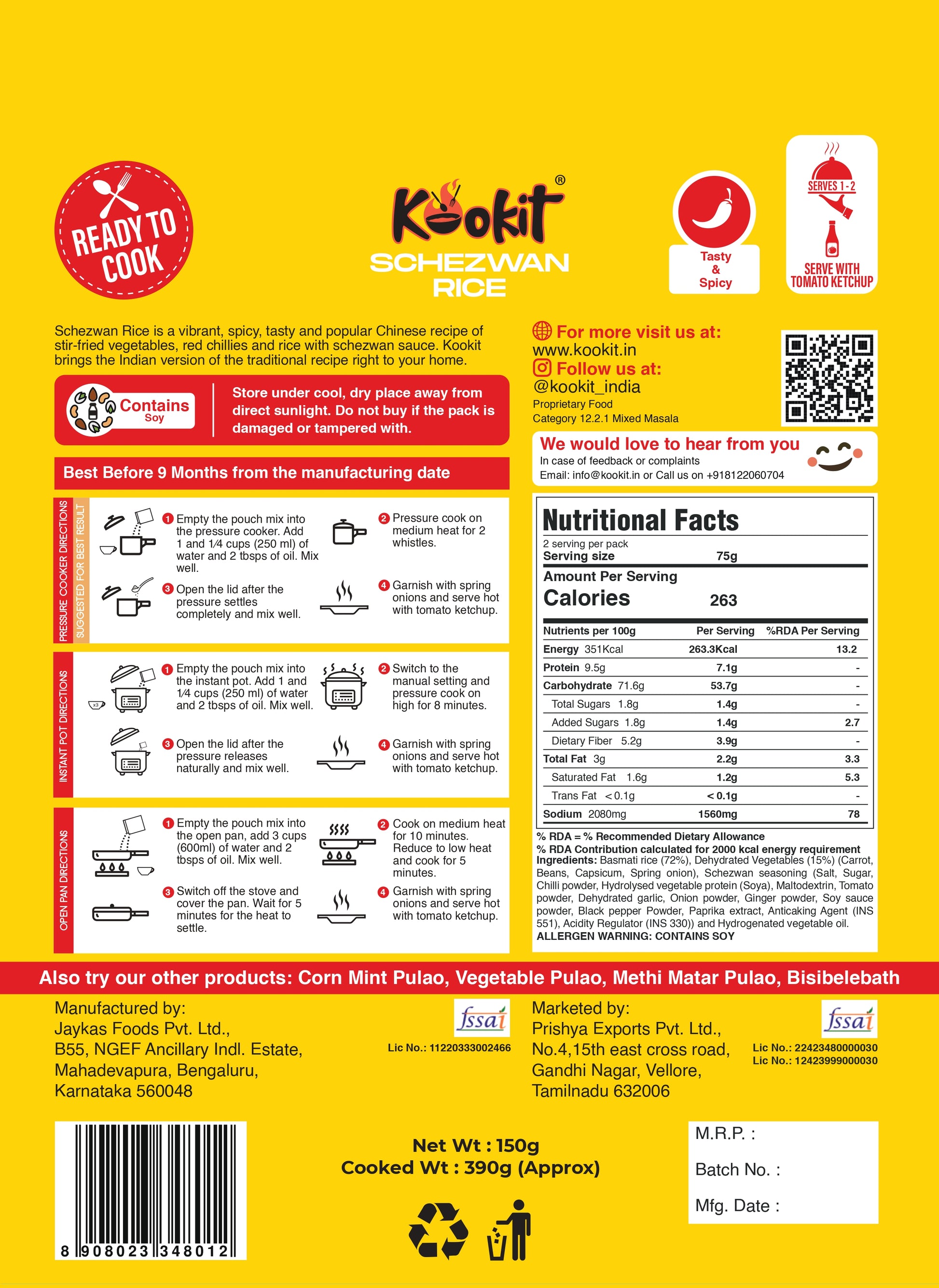 Schezwan rice is a popular Chinese-inspired dish made with cooked rice stir-fried with a spicy and flavorful sauce known as Schezwan sauce. The dish is believed to have originated in the Sichuan province of China, known for its bold and spicy flavors. It is known for its bold and addictive taste, making it a favorite among lovers of spicy cuisine. It’s a versatile dish that can be customized with various ingredients to suit individual preferences, making it a popular choice in Chinese restaurants and home kitchens alike. Kookit brings the Indian version of the traditional recipe right to your home while making it quick and simple to cook. Just empty the contents of the pouch, add water as per instructions and Kookit!
